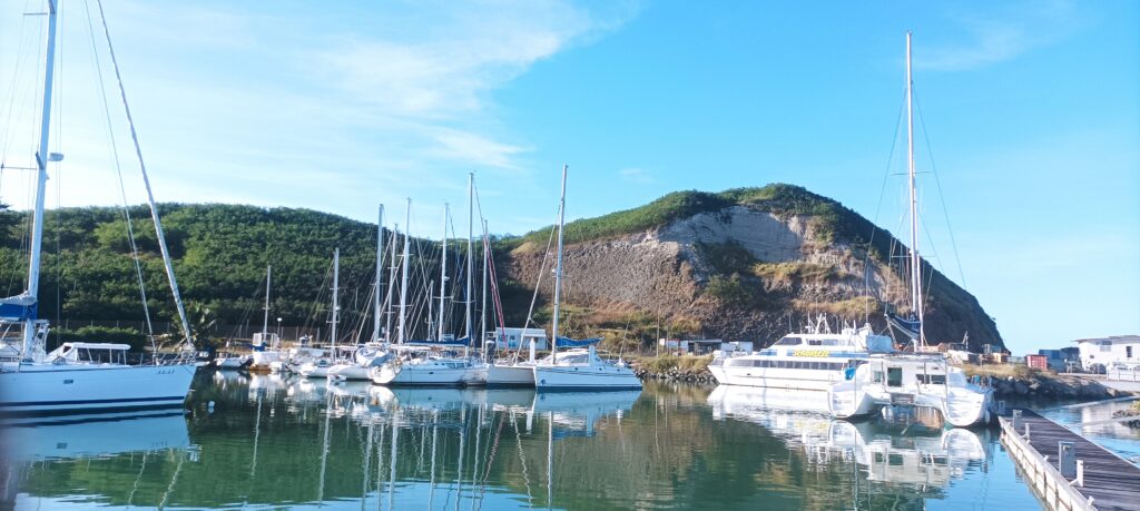 Après 1H30 de voiture depuis Koné pour rejoindre la marina de Koumac, le catamaran nous attend, avec, à son bord, d’autres curieux aventuriers ainsi qu’un capitaine hyper sympa, qui nous a même apporté sur l’île un sashimi de thon jaune à tomber par terre qu’il avait lui-même pêché et préparé!