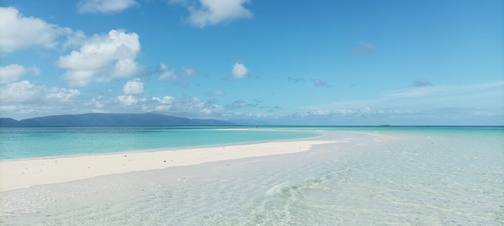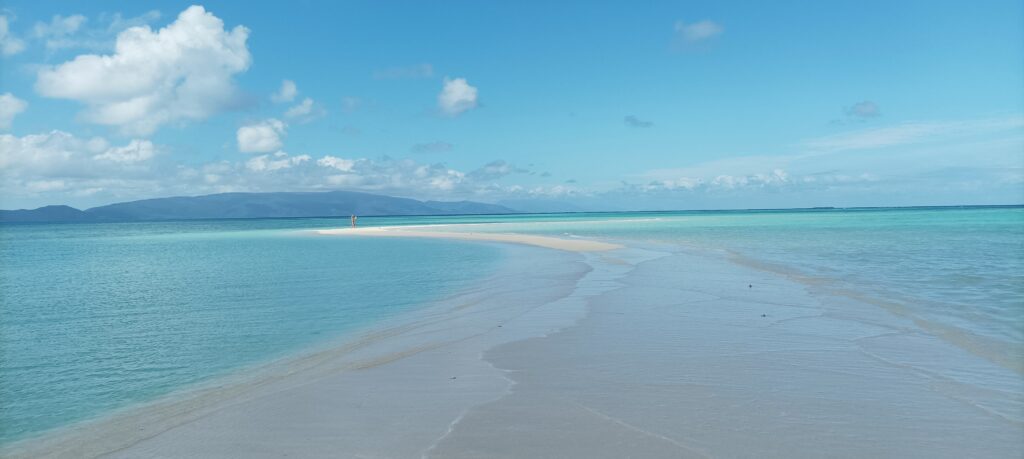 Quel folle sensation que celle de marcher seule sur cette immense langue de sable blanc se dévoilant au fur et à mesure de la marée entre deux eaux d’un bleu lagon paradisiaque…