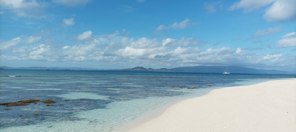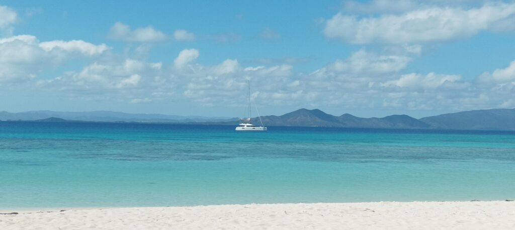 Quelques jours après mon arrivée, j’ai vu passer une annonce à un prix cassé proposant de rejoindre l’ilôt Tiam Bouene, situé tout au nord de la grande terre en catamaran! Il s’agissait d’une superbe opportunité, surtout qu’aucun croisiériste ne proposait cette excursion normalement!