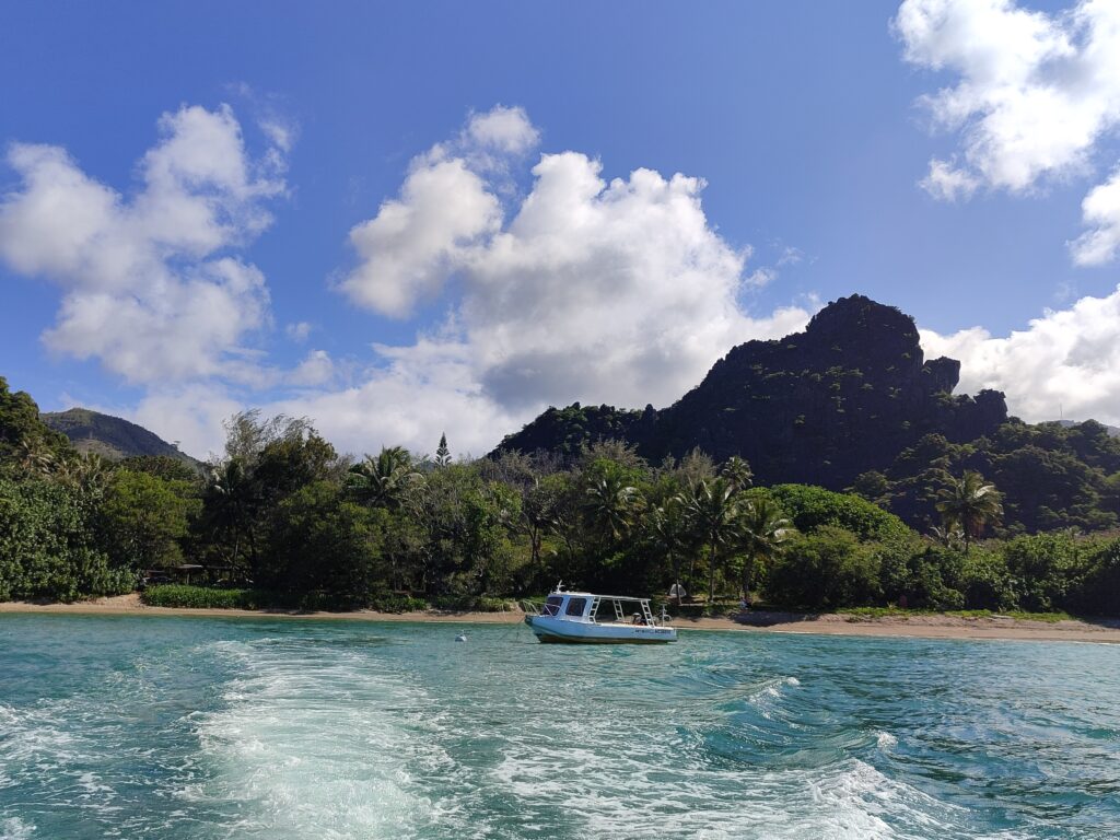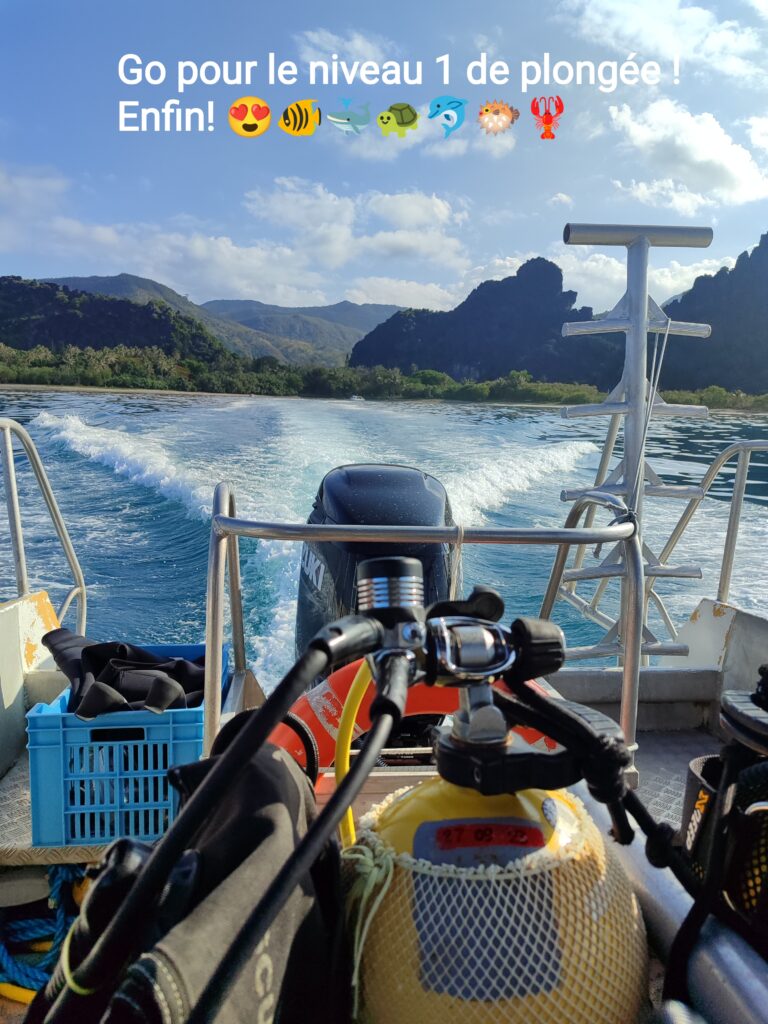 Enfin le grand jour! Quelle chance de pouvoir passer son niveau 1 de plongée ici! Voici le départ en bateau depuis le centre de plongée de Babou côté océan !