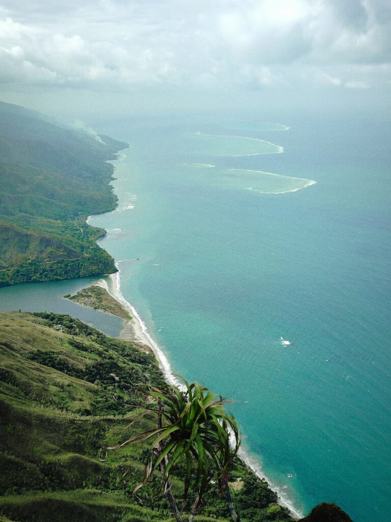 La vue sur le lagon et sur le légendaire bac de la Ouaième depuis le sommet de la randonnée !