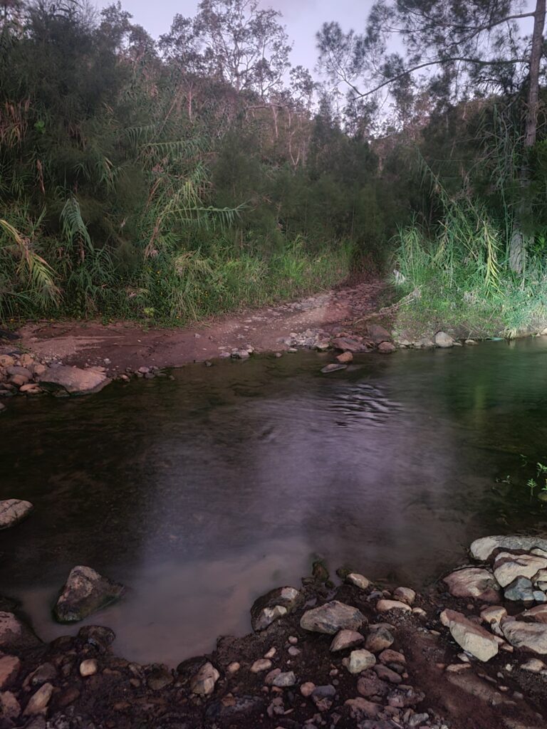 Ca y est Laura a osé mettre ses gambettes à l´eau. Elle se méfiait de ce qui pouvait se trouver dedans : pas vraiment de danger dans les eaux douces de Calédonie.