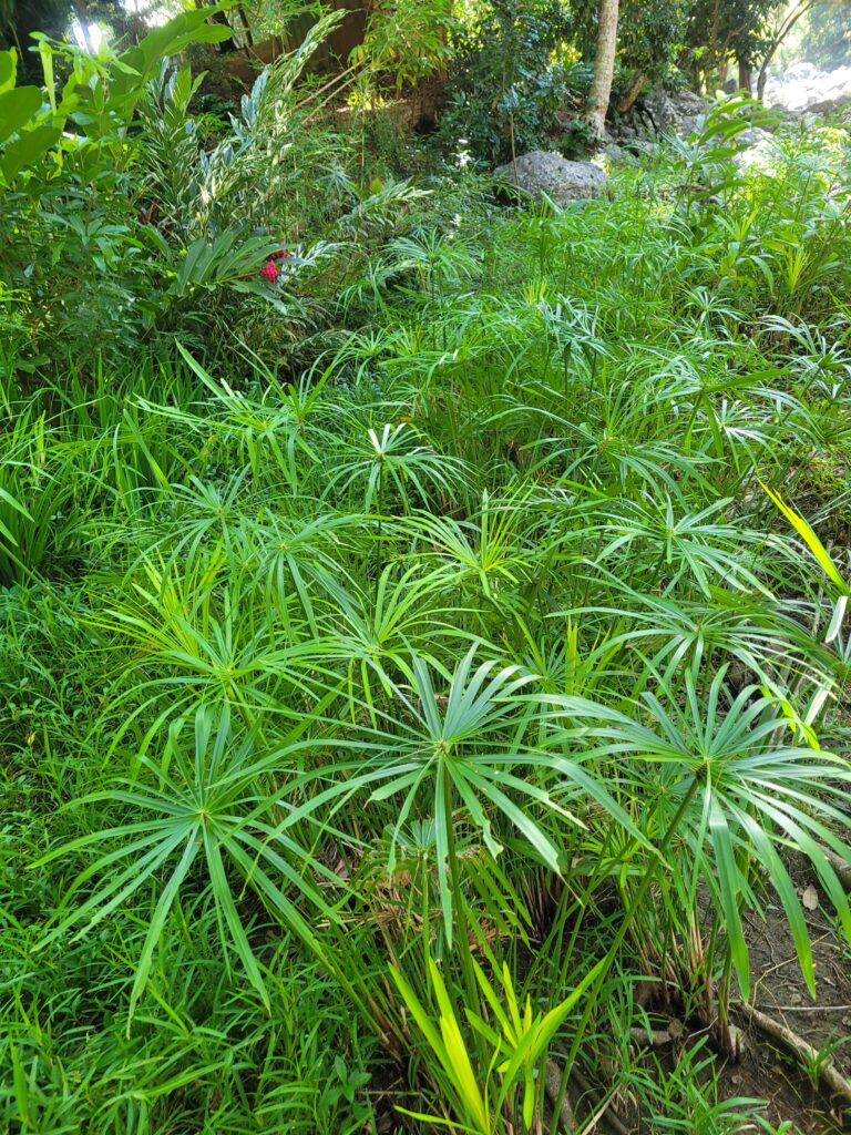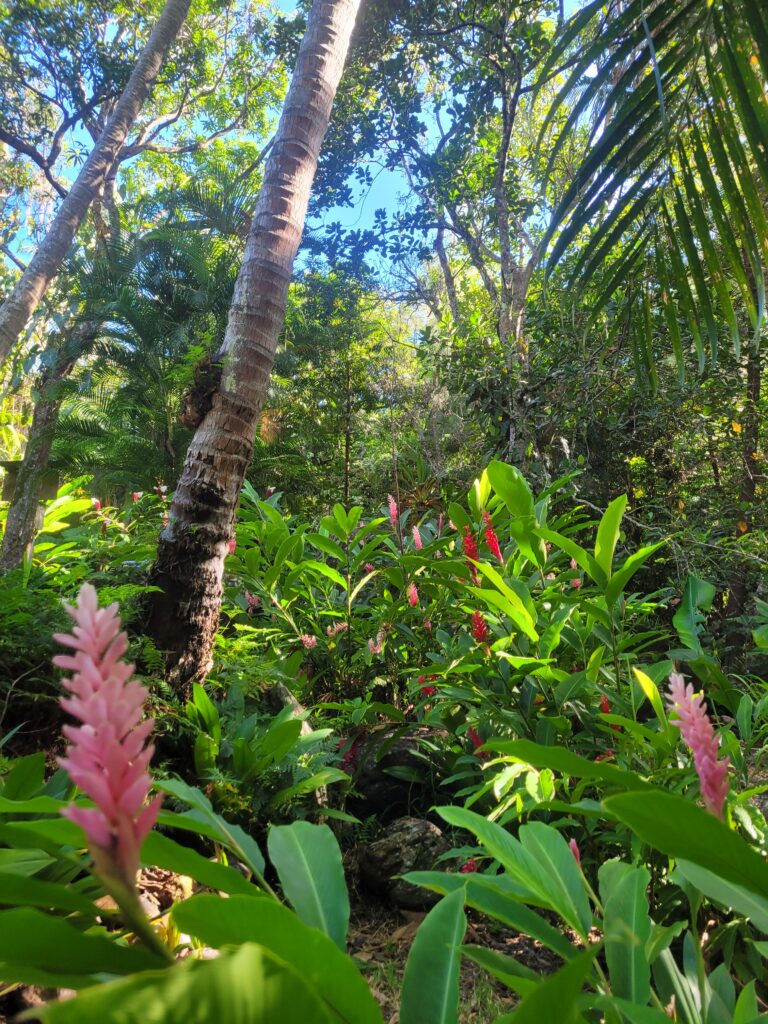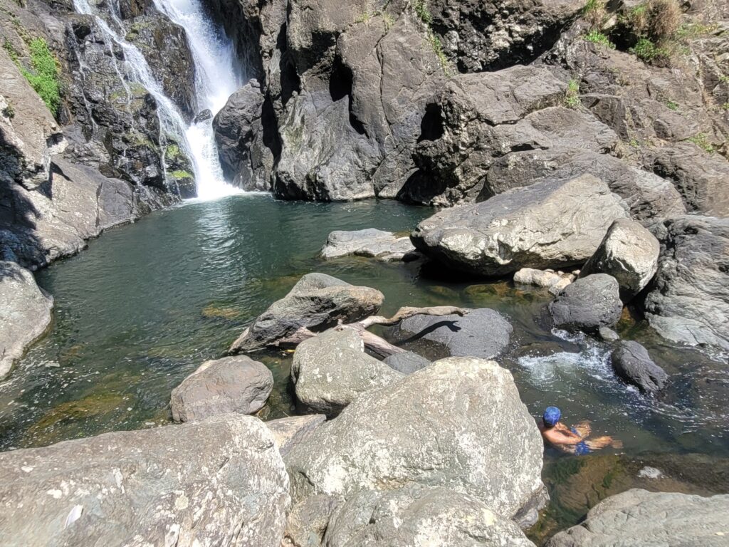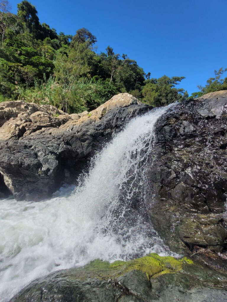 Sur le chemin entre le camping et la cascade, vous verrez toutes les plantations de papayes, ananas, ignames…Ainsi que des énormes bambous et des petits bassins d´eau claire.
