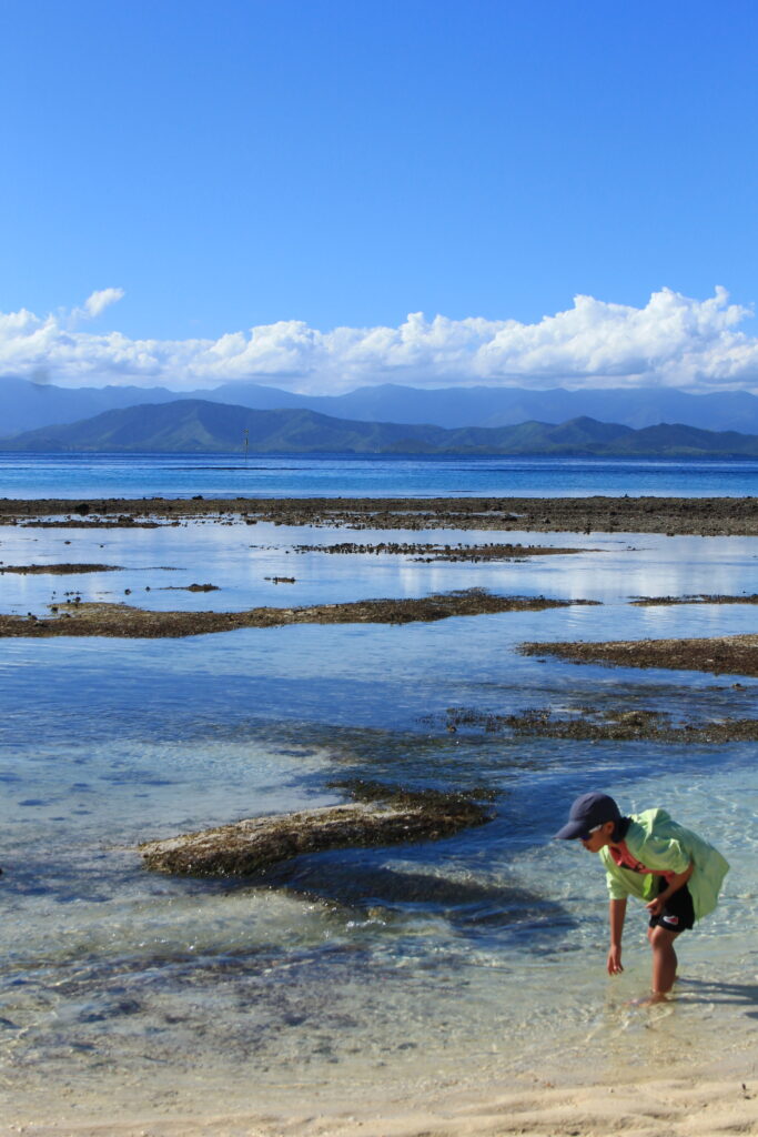 Comme un petit air de Bretagne dans cette ambiance de marée basse…Où le temps semble suspendu à cette beauté simple. Le bateau prend le temps de s’ancrer là lui aussi en attendant de rejoindre la grande terre.