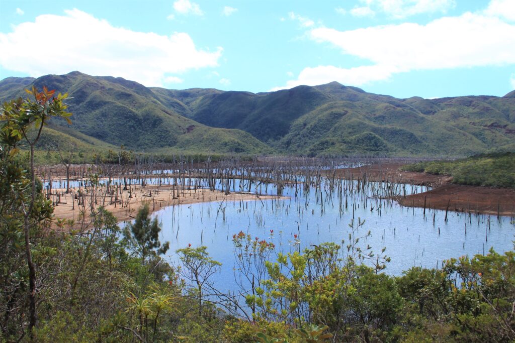 Les tronc blanchis noyés dans le lac de Yaté, une bien étrange curiosité…