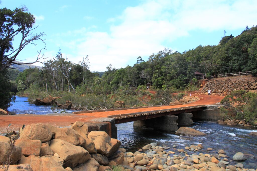 Et c’est parti pour une virée dans le sud de la grande terre ! Direction Yaté et le parc provincial de la rivière bleue ! C’est une zone naturelle protégée marquée par une forte biodiversité et dans laquelle cohabitent de nombreuses espèces végétales et animales endémiques! Vous pouvez par exemple avoir la chance de tomber sur un cagou, un corbeau calédonien, un notou… Parmi les choses à voir, vous pourrez également observer le kaori géant qui a plus de 1000 ans !