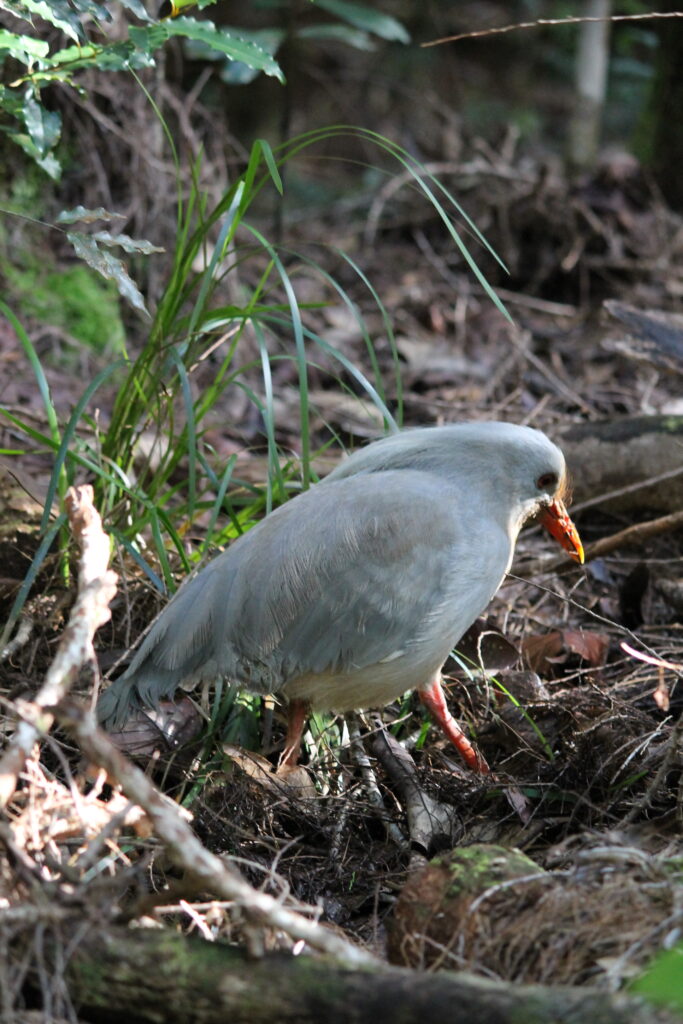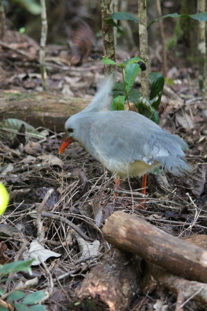 Nous avons eu la chance de voir des cagous à deux reprises dans leur habitat naturel. Le cagou est un gros volatile endémique de Nouvelle-Calédonie et emblème du territoire. Sa particularité : sa musculature est insuffisante pour lui permettre de voler, c’est pourquoi il a bien failli disparaître car il était devenu trop vulnérable depuis l’arrivée dans son milieu de chiens, chats, cochons, rats qui se nourrissent des oiseaux et de leurs œufs. Désormais il est une espèce protégé et la plupart de ses congénères se trouve dans le parc de la rivière bleue.