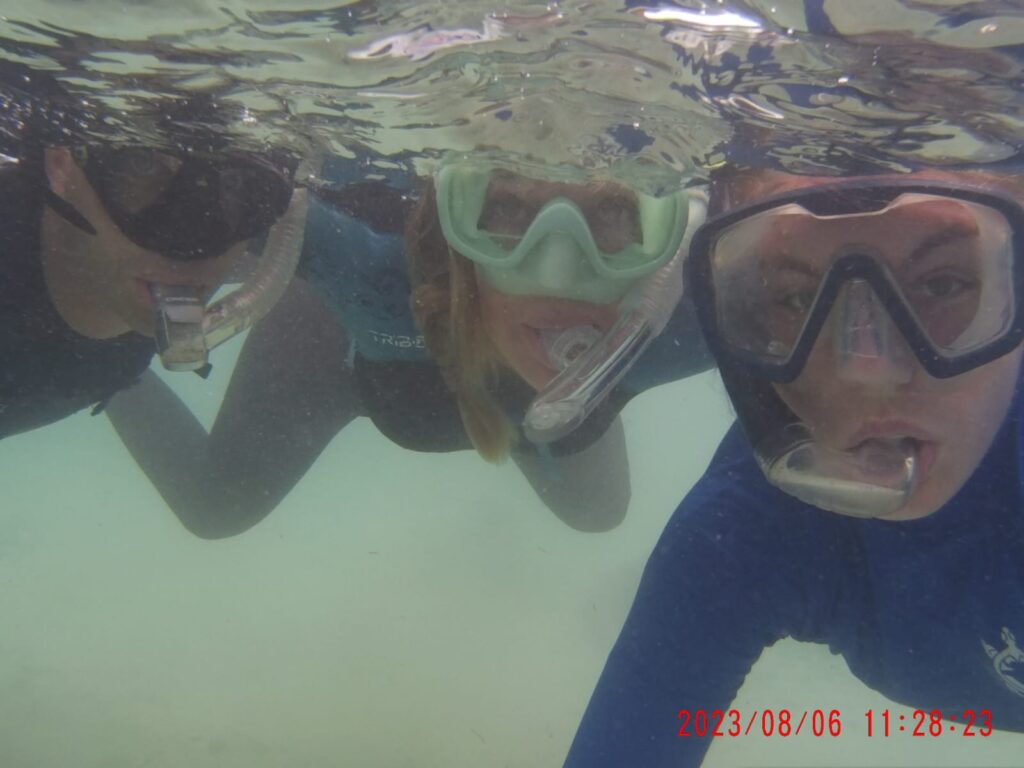 Juste après avoir pris cette photo, j’ai une super vidéo gag (interview en plus) de Laura en train de se prendre les pieds ( dans ses palmes?! ) et de tomber comme une crêpe ( dira t-on!) dans l’eau en 2 étapes ! 🤣