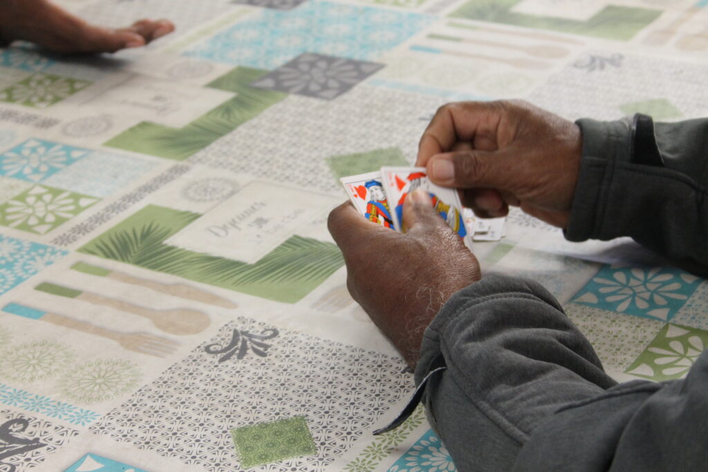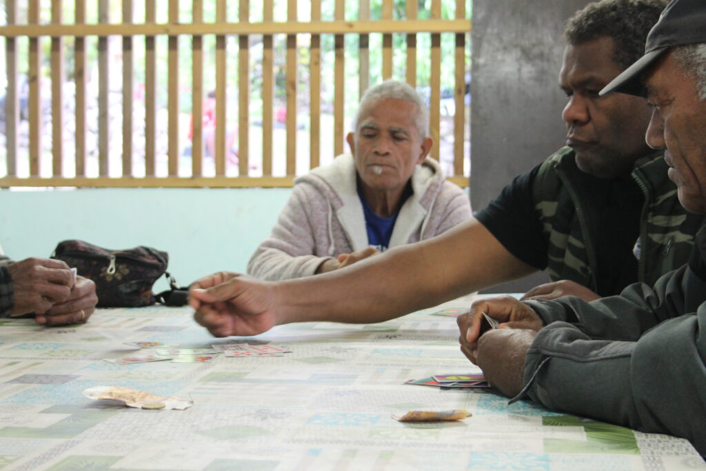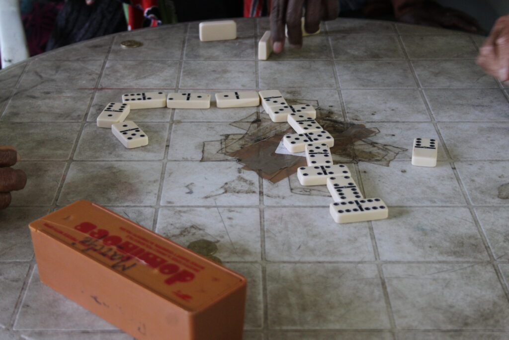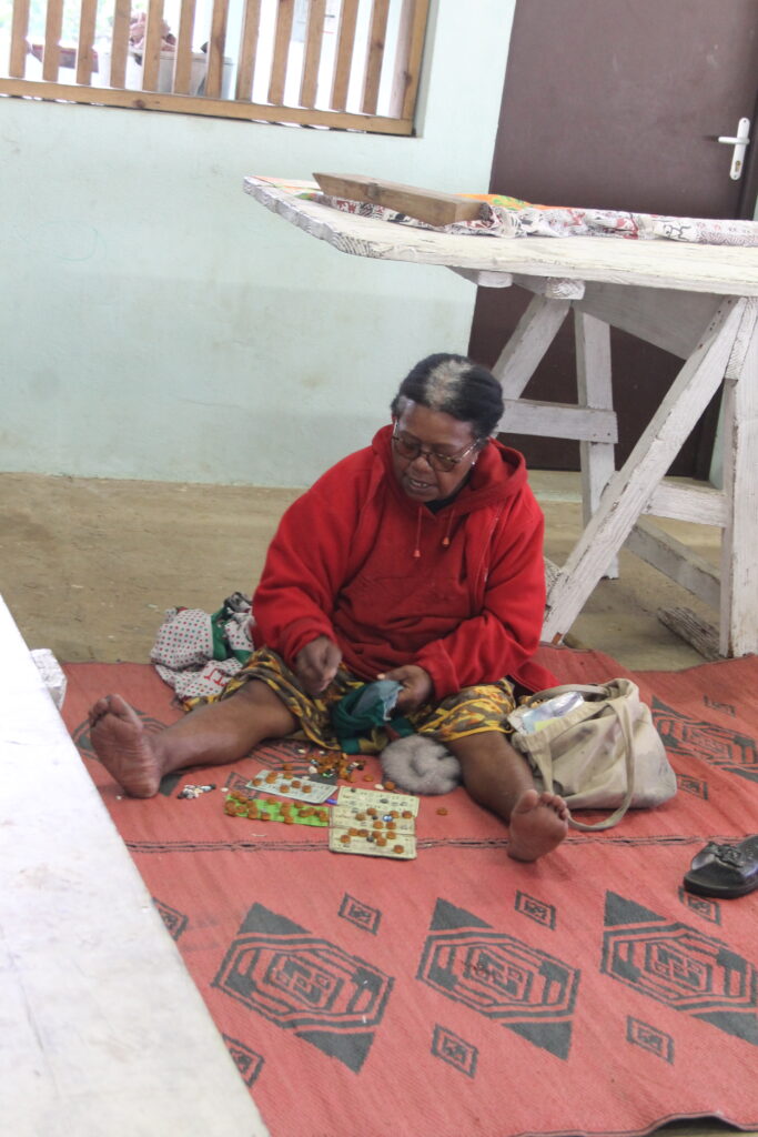 Ensuite nous nous arrêtons sur le tout petit marché de Tadine ! L’ambiance est vraiment spéciale, très campagnarde ! L’espace est divisé en petits groupes : les habitués des dominos, les joueurs de cartes et les mordus du bingo.