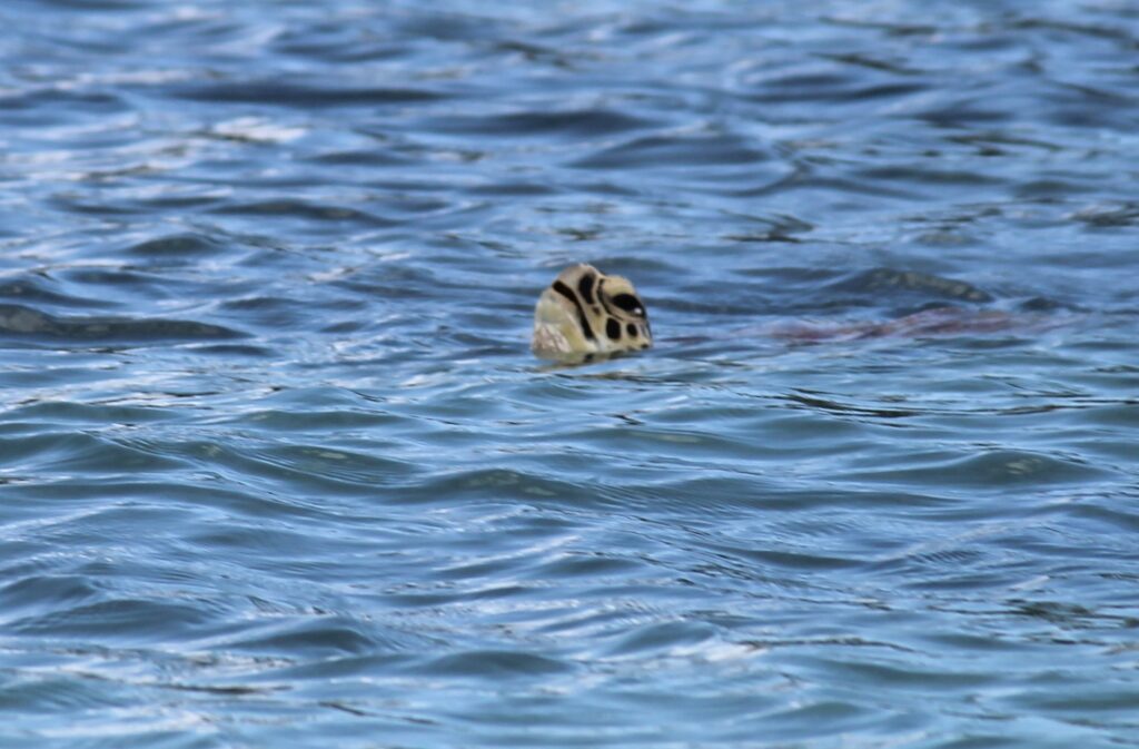 Et voilà pourquoi elle s’appelle la baie des tortues. Il y en a partout. Le soleil joue à cache-cache derrière des gros nuages menaçants, le vent fait baisser la température de l’air…Tout cela est peu propice à la baignade mais comment résister à l’appel de tortues peu farouches nageant dans 50 cm d’eau??? Ni une, ni deux, nous enfilons les combinaisons pour nager avec les maîtresses de ces lieux! Elles sont toutes tranquilles et font leur vie comme si nous n’existions pas! Je les adore! Je suis hyper heureuse et émue de vivre à nouveau ce moment! J’en oublie le froid et passe de longues minutes à regarder, suivre et filmer les tortues sous l’eau!