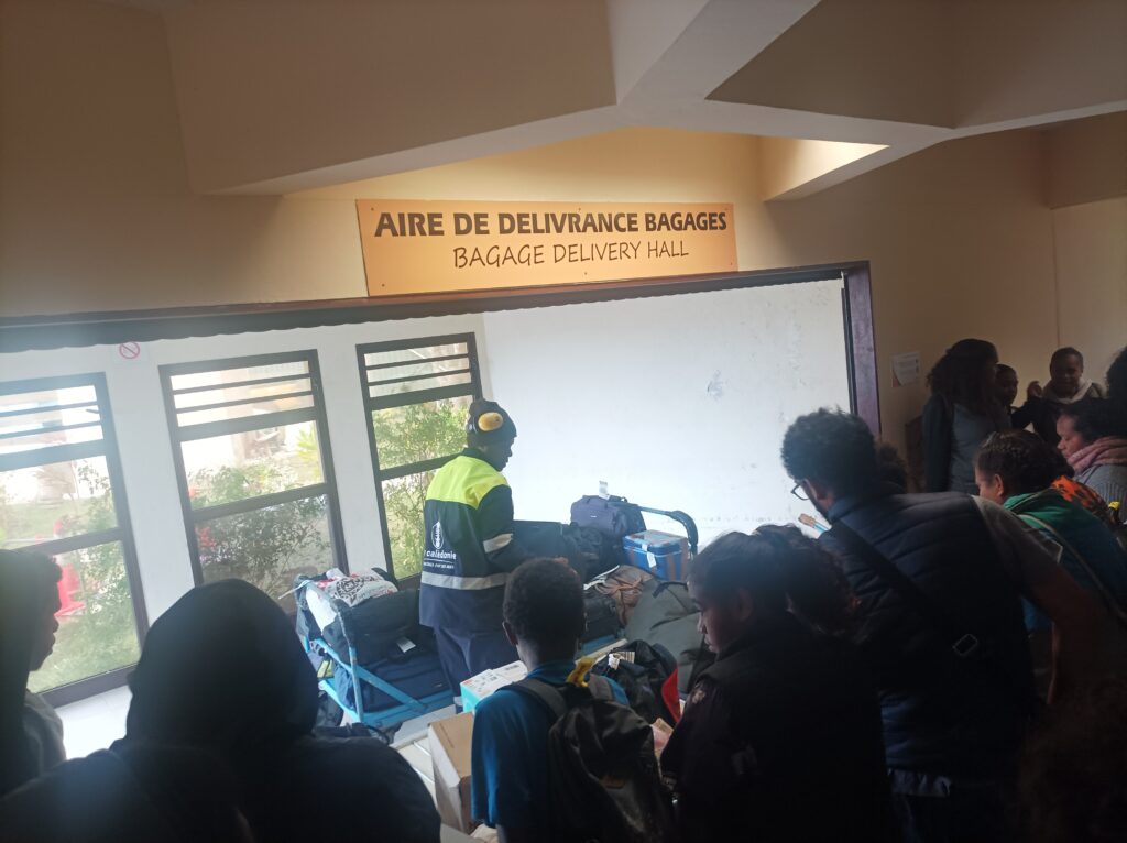 Voici un aperçu de l’attente pour récupérer ses bagages. Il y a toute sorte de marchandises plus ou moins bien emballées! Concernant le contenant cela va de la couette à faire laver à maman au poulet à livrer à tantine !