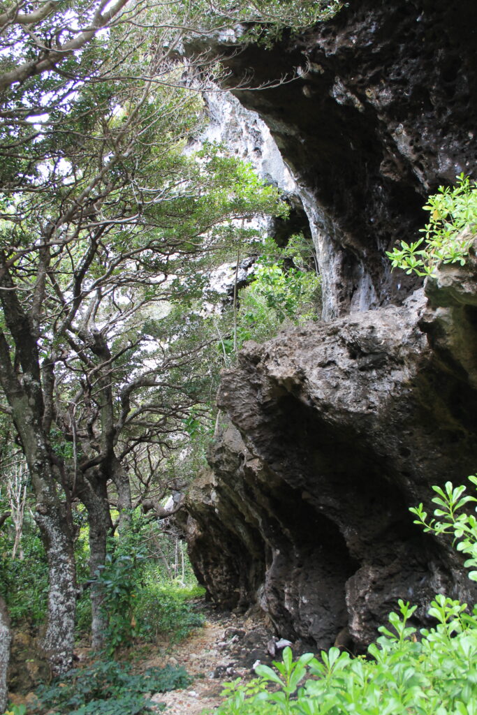 Il s’agit d’un trou d’eau salée au milieu de la végétation. L’endroit est calme et surprenant car situé un peu en marge de la côte. Il est interdit de s’y baigner. Il faut donc se contenter de rester en hauteur et de contempler les poissons depuis le bord. L’aquarium naturel est une petite pause sympathique, j’imagine que c’est plus agréable en été de s’y poser un moment à l’ombre. J’ai aimé ce site mais ce n’est pas ce qui m’a le plus marqué lors de notre séjour à Maré.