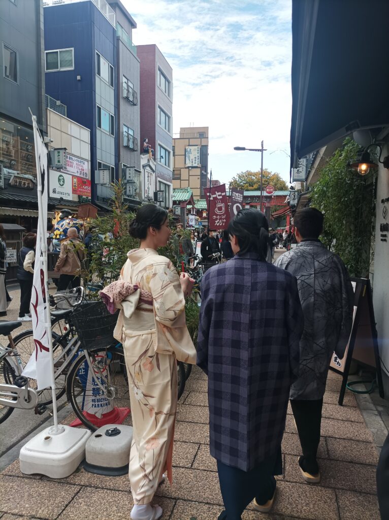 Je vous conseille vraiment de débuter votre visite de Tokyo par le quartier d’Asakusa car cela procure une immersion totale dans la culture japonaise! C’est très dépaysant! Les japonais eux-mêmes ont plaisir à porter leurs costumes traditionnels pour arpenter les rues et se rendre au temple.
