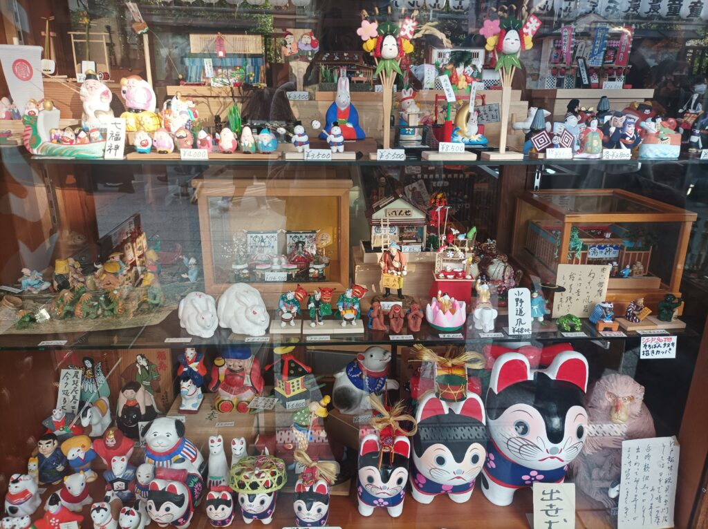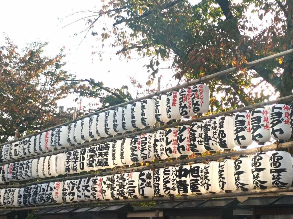 Dans les rues aux abords du sanctuaire, vous trouverez plein de petites échoppes à souvenirs dont certaines vraiment mignonnes ainsi que les décorations habituelles du Japon : les fameuses lanternes en papier.