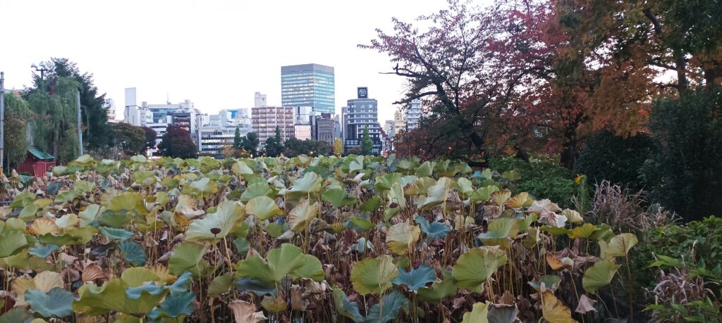 J’ai parcouru toutes les rues de Asakusa en passant par la rue du matériel de cuisine, j’ai traversé la voie ferrée avec ces trains verts qui s’entrecroisent, je suis passée par Yanaka pour enfin arriver au parc Oueno à la tombée de la nuit.