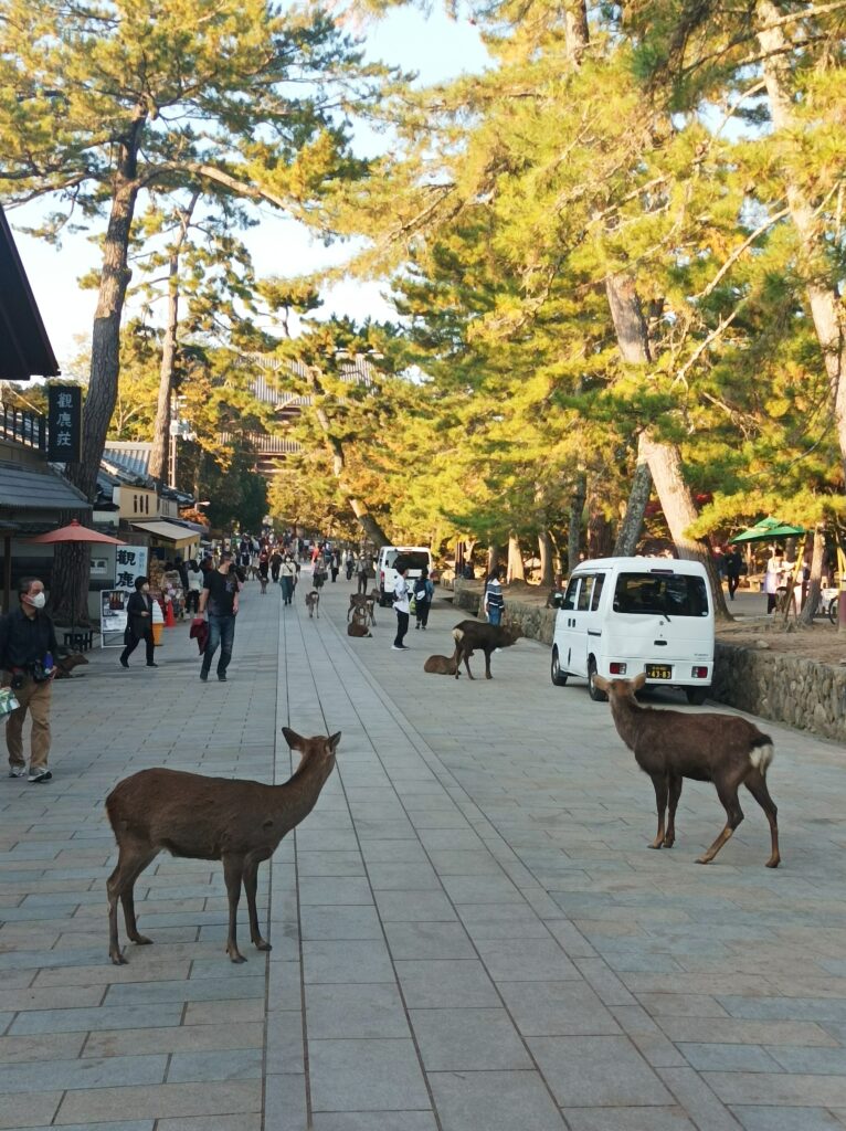 Des centaines de biches vivent en liberté dans la ville. On les trouve donc sur les voies piétonnières, sur la route, dans les caniveaux, devant les temples…